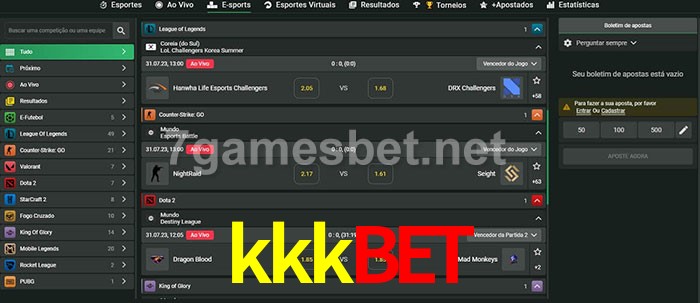 O kkkbet oferece uma grande seleção de opções de apostas em e-sports com probabilidades competitivas